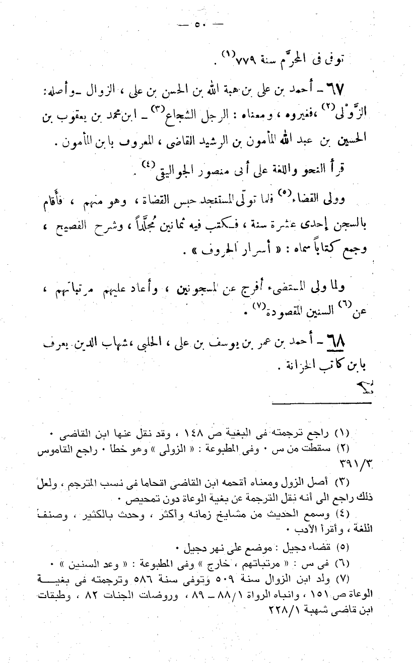 (7) ولد ابن الزوال سنة 509 وتوفى سنة 586 وترجمته فى بغية الوعاة ص 151، وانباه الرواة 1/ 88 - 89، وروضات الجنات 82، وطبقات ابن قاضى شهبة 1/ 228
