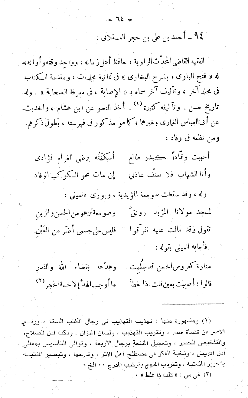 94 - أحمد بن على بن حجر العسقلانى.