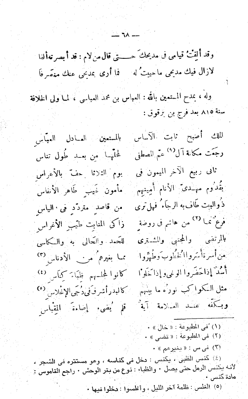 وله، يمدح المستعين بالله: العباس بن محمد العباسى، لما ولى الخلافة سنة 815 بعد فرج بن برقوق: