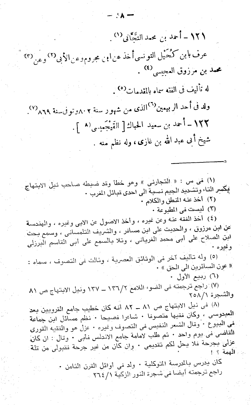(1) فى س: «التجارنى» وهو خطأ وقد ضبطه صاحب نيل الابتهاج بكسر التاء وتشديد الجيم نسبة الى احدى قبائل المغرب.