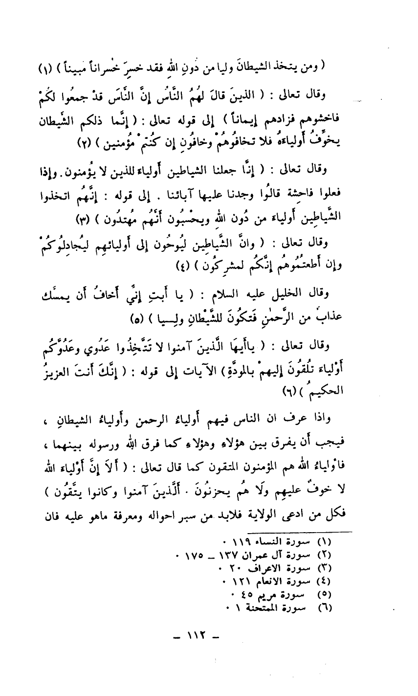 (وَمَن يَتَّخِذِ الشَّيْطَانَ وَلِيًّا مِّن دُونِ اللهِ فَقَدْ خَسِرَ خُسْرَانًا مُّبِينًا) (¬1) .