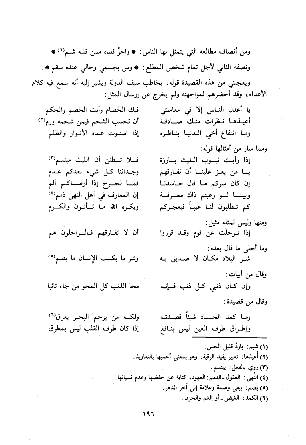 ويعجبني من هذه القصيدة قوله، يخاطب سيف الدولة ويشير إليه أنه سمع فيه كلام الأعداء، وقد أحضرهم لمواجهته ولم يخرج عن إرسال المثل: