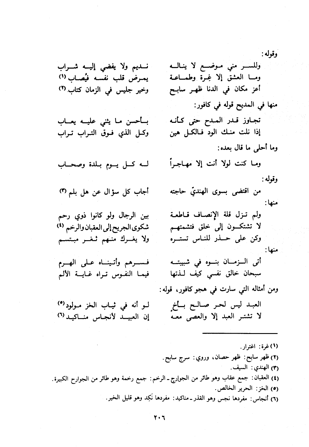 منها في المديح قوله في كافور:
