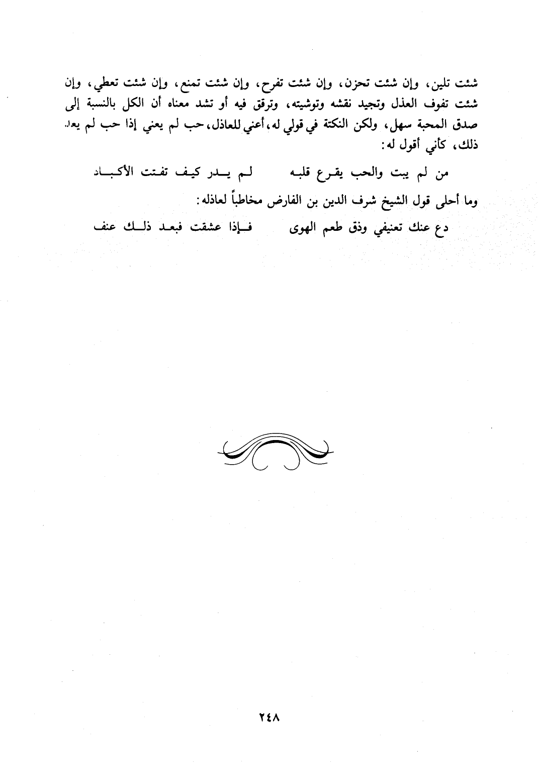 وما أحلى قول الشيخ شرف الدين بن الفارض مخاطبًا لعاذله: