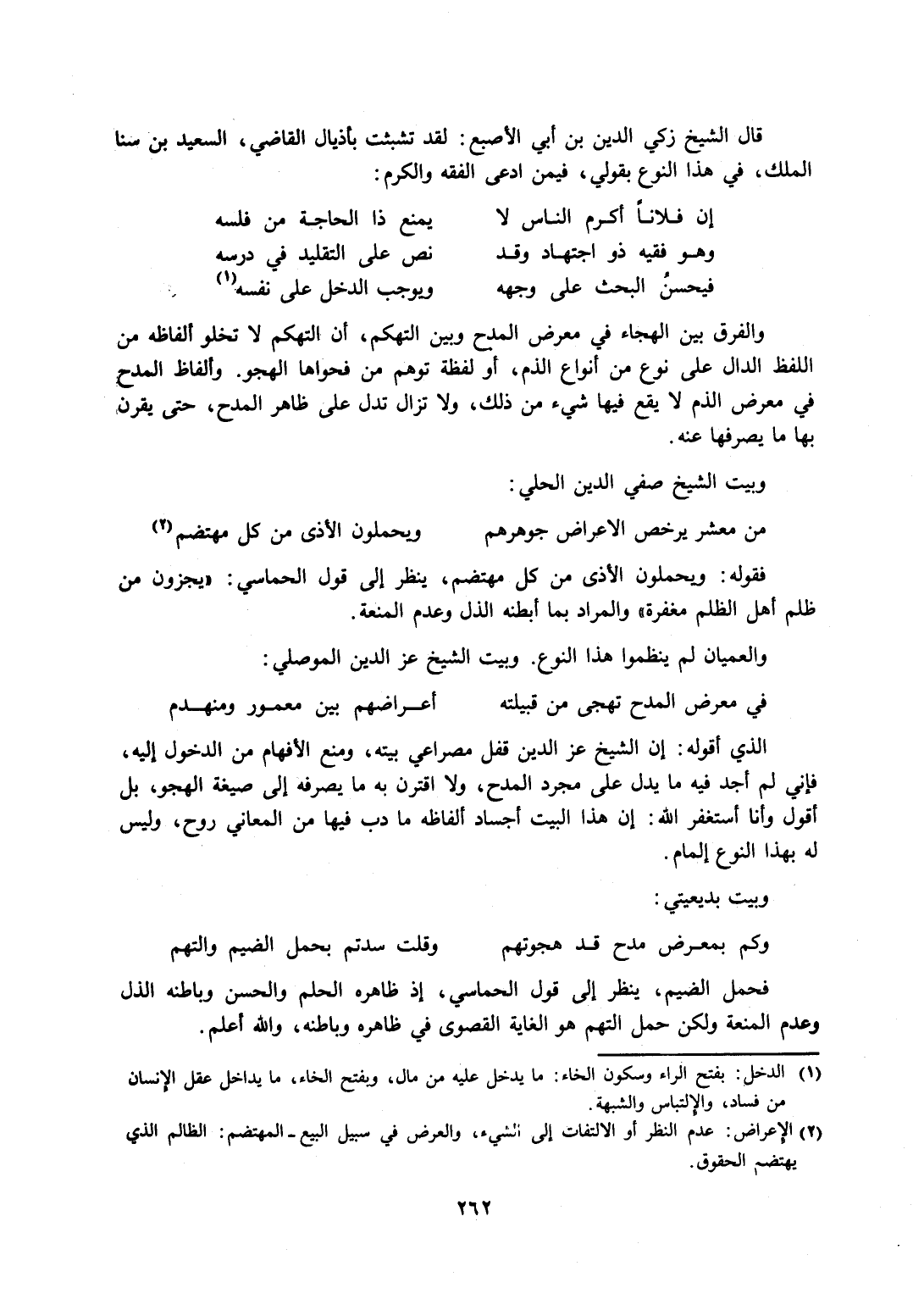 قال الشيخ زكي الدين بن أبي الأصبع: لقد تشبثت بأذيال القاضي، السعيد بن سناء الملك، في هذا النوع بقولي، فيمن ادعى الفقه والكرم: