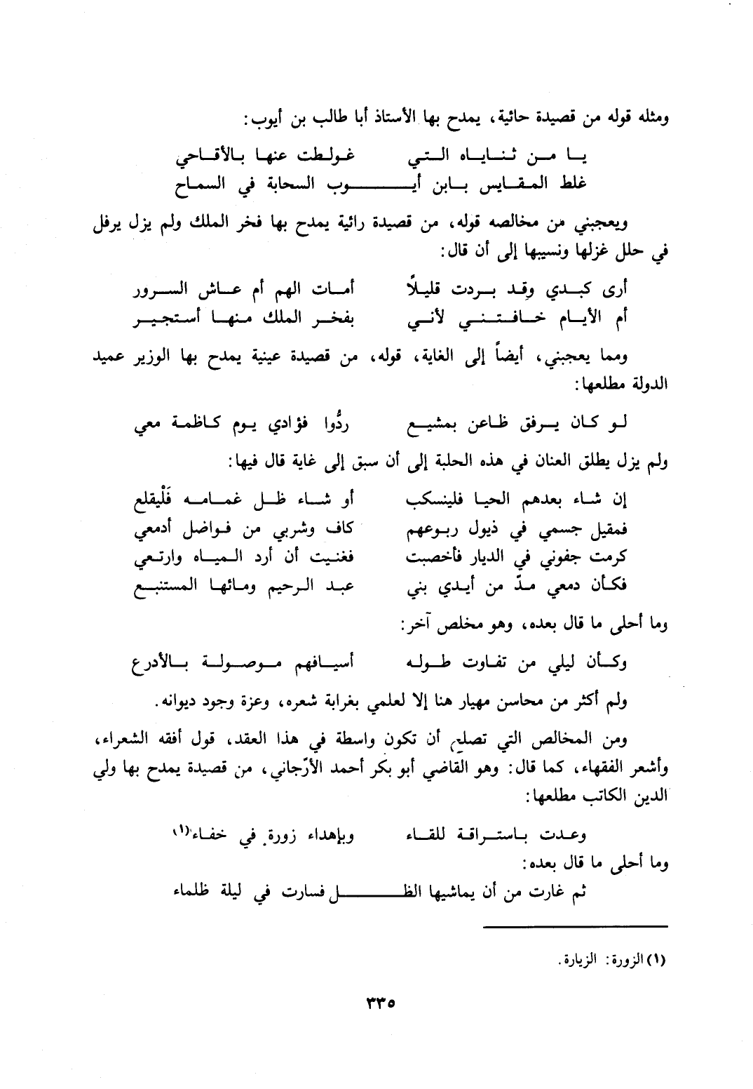 ومن المخالص التي تصلح أن تكون واسطة في هذا العقد، قول أفقه الشعراء، وأشعر الفقهاء، كما قال: وهو القاضي أبو بكر أحمد الأرجاني، من قصيدة يمدح بها ولي الدين الكاتب مطلعها: