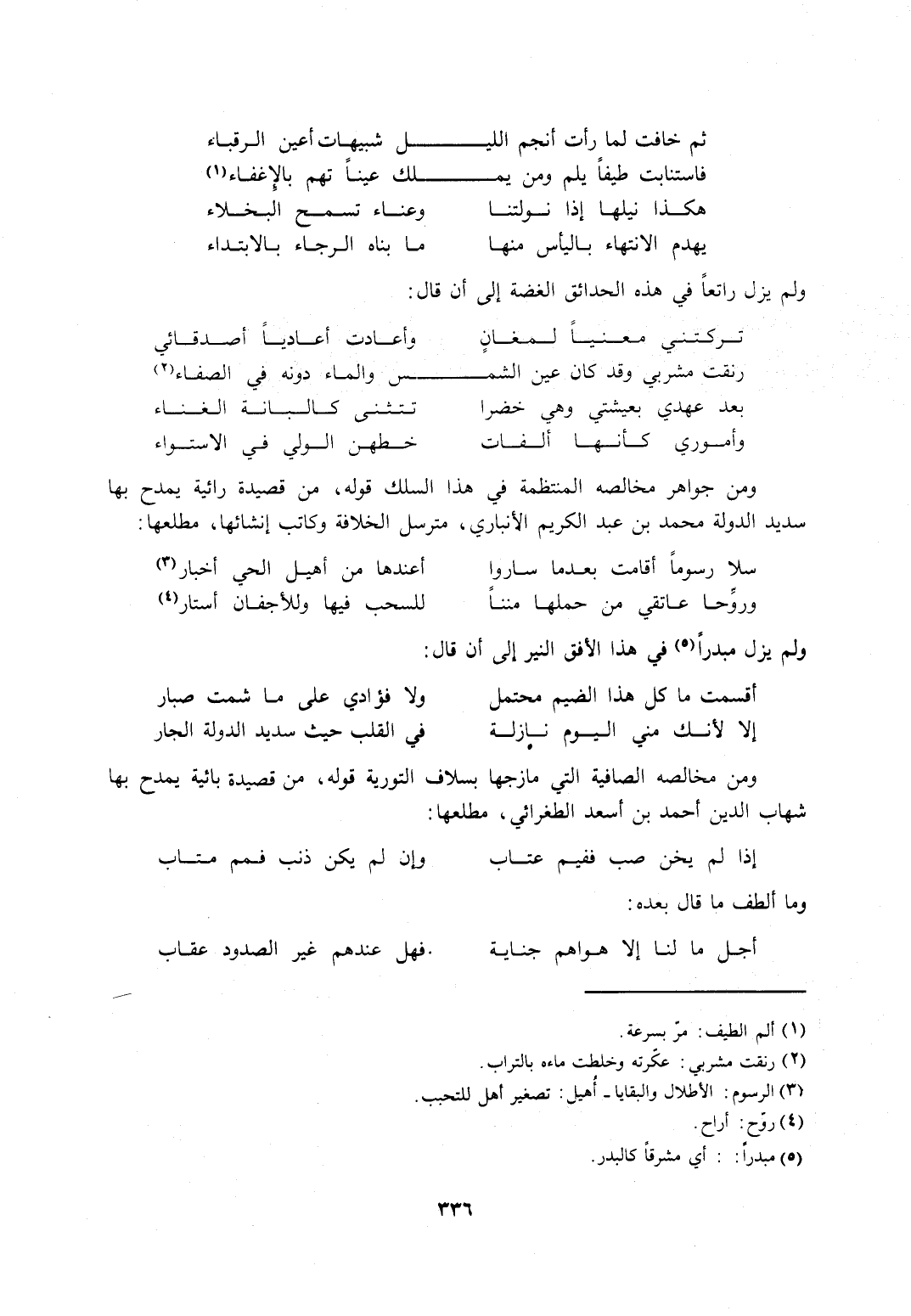 ومن مخالصه الصافية التي مازجها بسلاف التورية قوله، من قصيدة بائية يمدح بها شهاب الدين أحمد بن أسعد الطغرائي مطلعها: