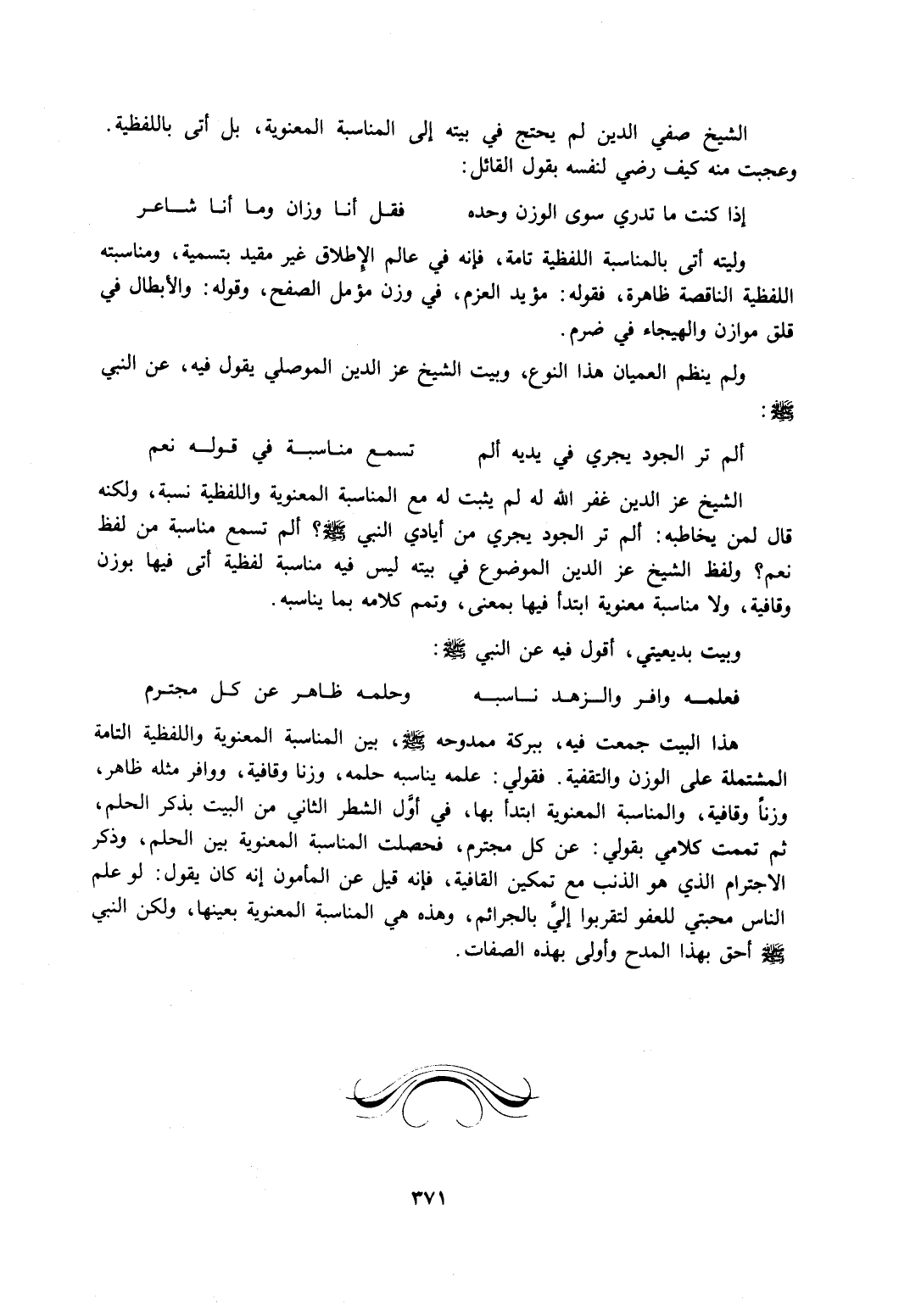 الشيخ صفي الدين لم يحتج في بيته إلى المناسبة المعنوية، بل أتى باللفظية. وعجبت منه كيف رضي لنفسه بقول القائل: