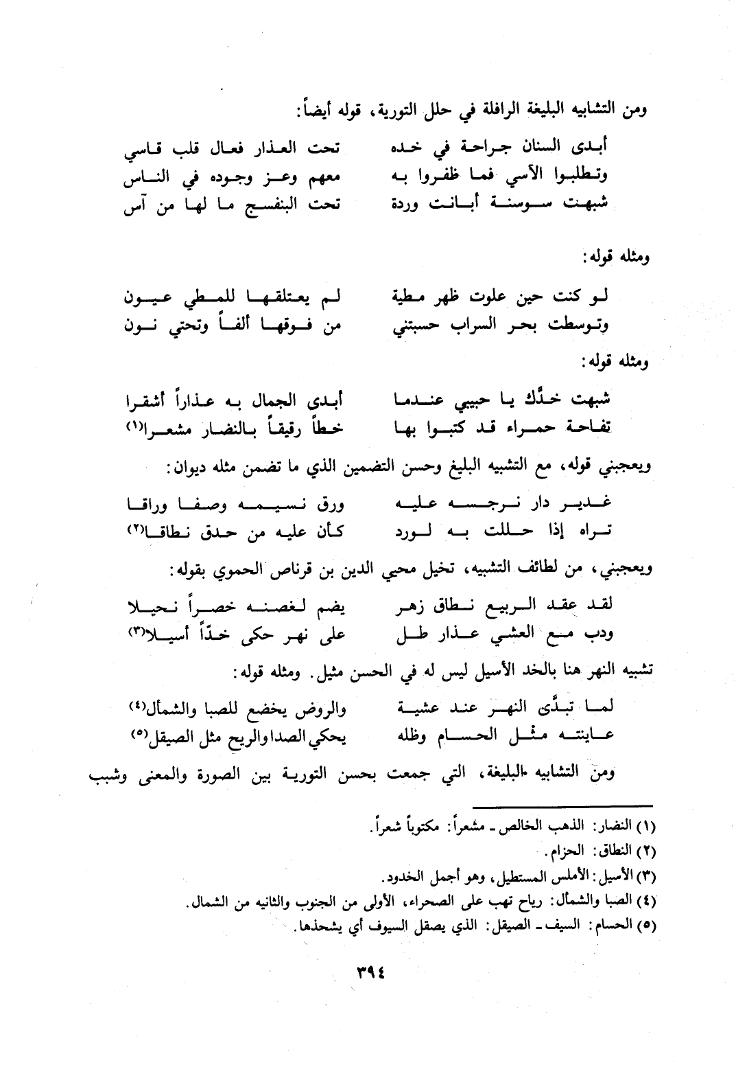 ومن التشابيه البليغة الرافلة في حلل التورية، قوله أيضًا: