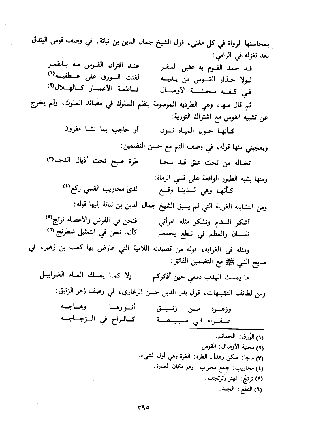 ومن التشابيه الغريبة التي لم يسبق الشيخ جمال الدين بن نباتة إليها قوله:
