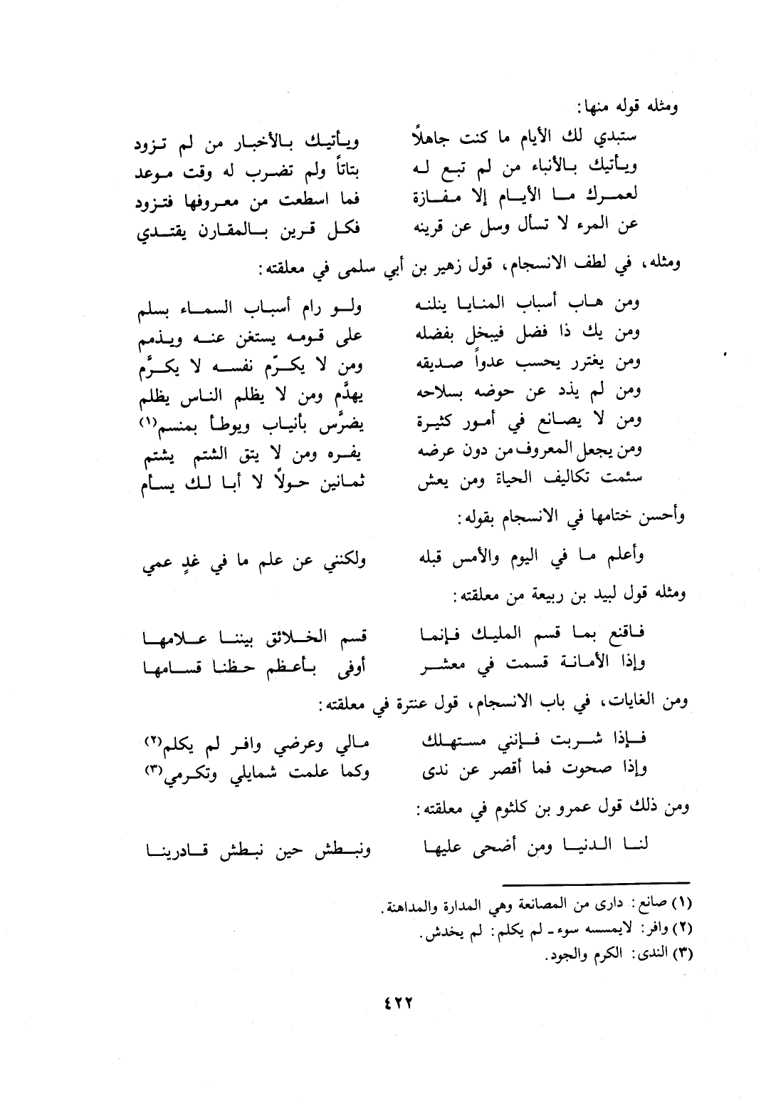 ومثله، في لطف الانسجام، قول زهير بن أبي سلمى في معلقته: