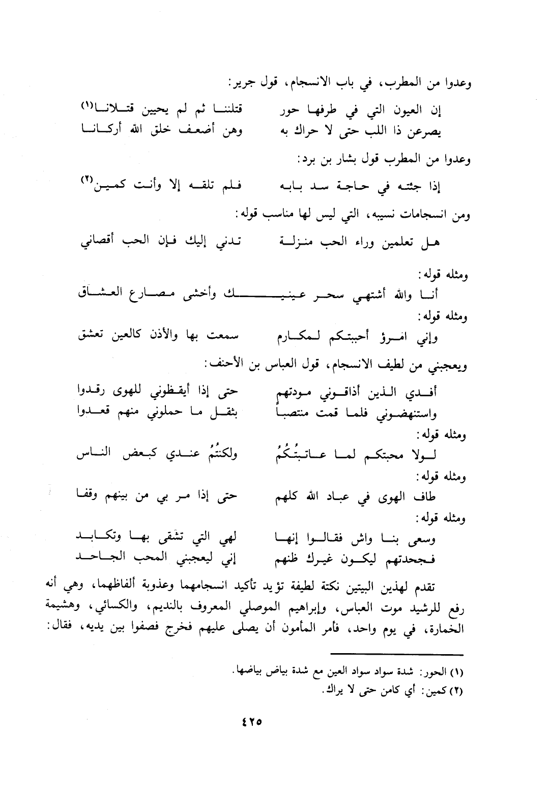 وعدوا من المطرب، في باب الانسجام، قول جرير: