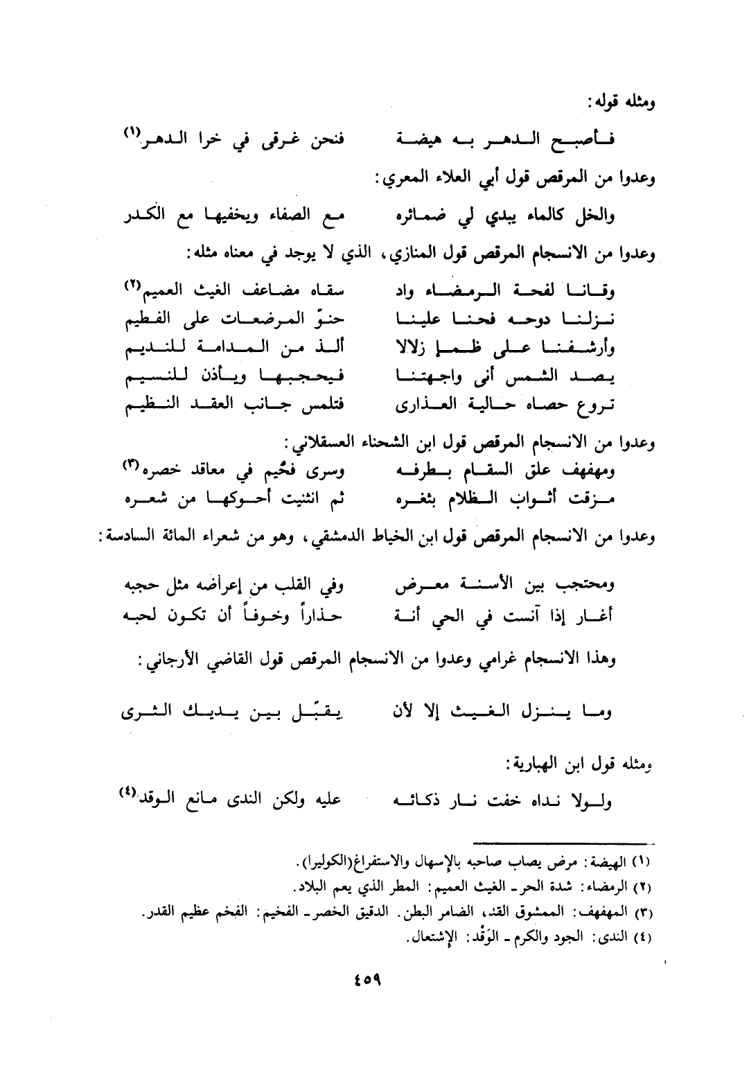 وعدوا من الانسجام المرقص قول ابن الشحناء العسقلاني: