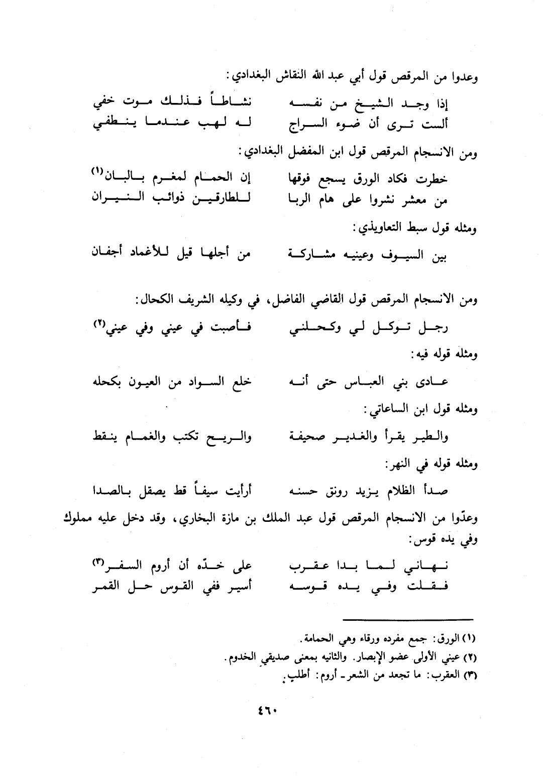 ومن الانسجام المرقص قول ابن المفضل البغدادي: