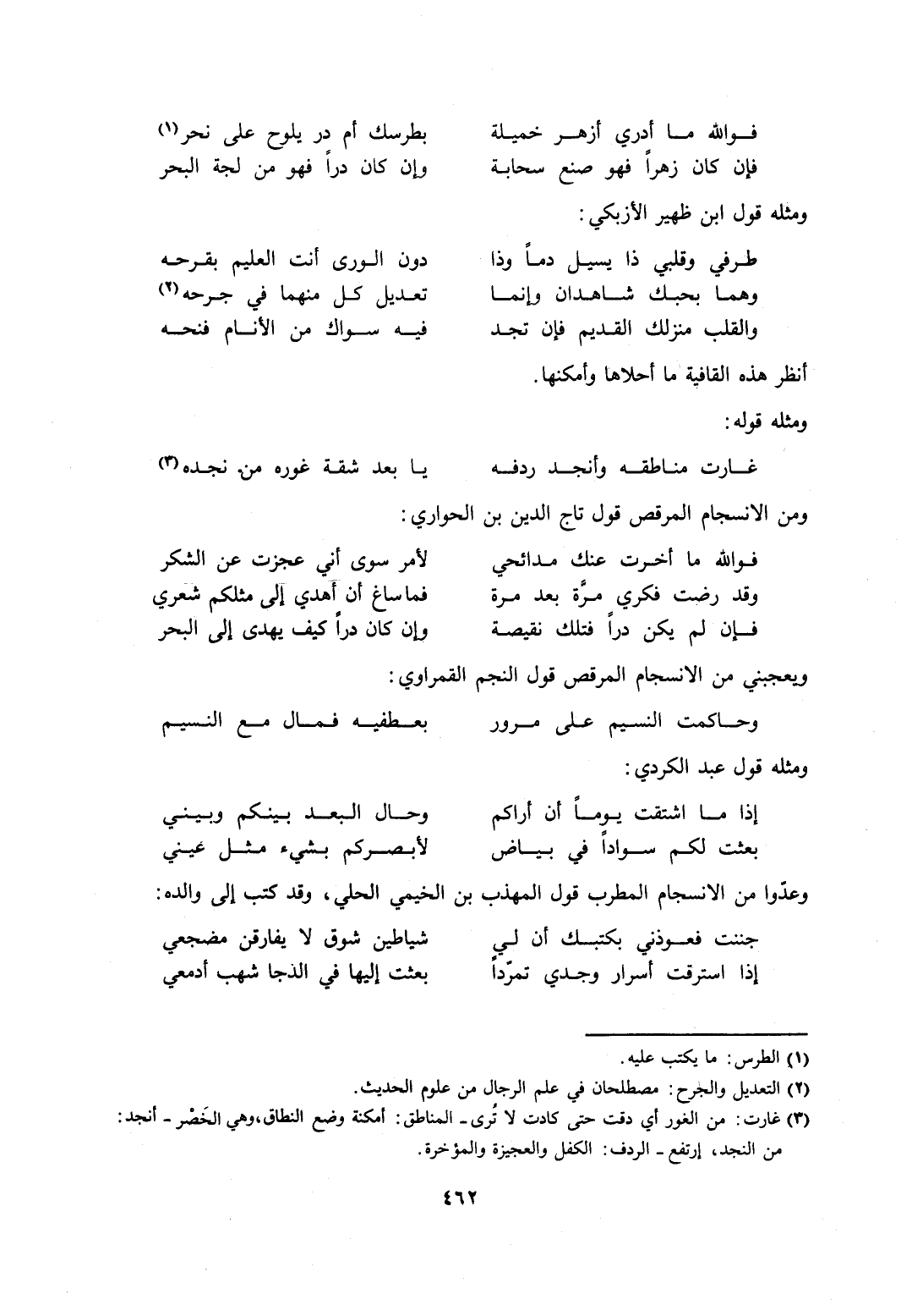 وعدّوا من الانسجام المطرب قول المذهب بن الخيمي الحلي، وقد كتب إلى والده: