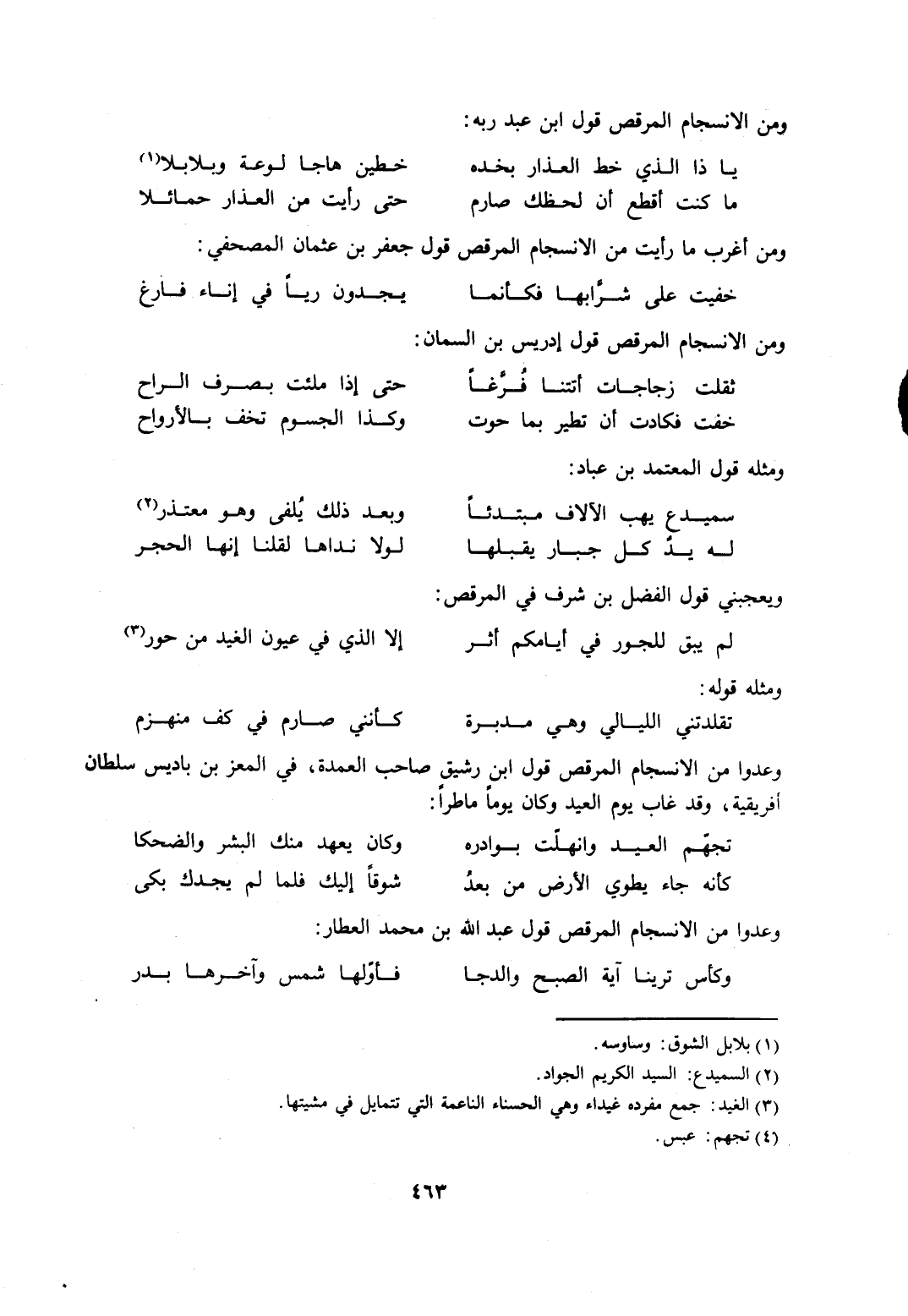 وعدوا من الانسجام المرقص قول عبد الله بن محمد العطار: