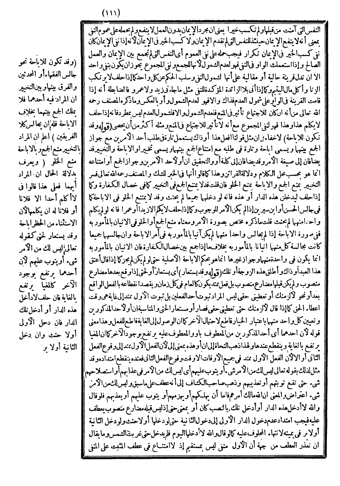 ـــــــــــــــــــــــــــــQالْمَفْعُولِ، وَلَوْ سُلِّمَ فَالْمَفْعُولُ " عِتْقَهُ " لَا كَلِمَةُ " مَنْ " وَضْعُهُ ظَاهِرٌ، وَبَيْنَهُمَا فَرْقٌ آخَرُ تَفَرَّدَ بِهِ الْمُصَنِّفُ تَقْرِيرُهُ أَنَّ مَنْ يَحْتَمِلُ التَّبْعِيضَ، وَالْبَيَانَ، وَالتَّبْعِيضُ مُتَيَقَّنٌ ثَابِتٌ عَلَى التَّقْدِيرَيْنِ ضَرُورَةَ وُجُودِ الْبَعْضِ فِي ضِمْنِ الْكُلِّ، وَإِرَادَةُ الْكُلِّ مُحْتَمَلَةٌ فَيُجْعَلُ مَنْ عَلَى التَّبْعِيضِ أَخْذًا بِالْمُتَيَقَّنِ الْمَقْطُوعِ، وَتَرْكًا لِلْمُحْتَمَلِ الْمَشْكُوكِ فَفِي مَنْ شَاءَ مِنْ عَبِيدِي أَمْكَنَ الْعَمَلُ بِعُمُومِ مَنْ، وَتَبْعِيضُ مَنْ بِأَنْ يُعْتِقَ كُلَّ وَاحِدٍ لِأَنَّهُ لَمَّا عَلَّقَ عِتْقَ كُلٍّ لِمَشِيئَتِهِ مَعَ قَطْعِ النَّظَرِ عَنْ الْغَيْرِ كَانَ كُلُّ مَنْ شَاءَ الْعِتْقَ بَعْضًا مِنْ الْعَبِيدِ بِخِلَافِ مَنْ شِئْت مِنْ عَبِيدِي فَإِنَّ الْمُخَاطَبَ لَوْ شَاءَ عِتْقَ الْكُلِّ سَقَطَ مَعْنَى التَّبْعِيضِ بِالْكُلِّيَّةِ، وَهَذَا ظَاهِرٌ عَلَى تَقْدِيرِ تَعَلُّقِ الْمَشِيئَةِ بِالْكُلِّ دُفْعَةً لِأَنَّ مَنْ شَاءَ الْمُخَاطَبُ عِتْقَهُ لَيْسَ بَعْضَ الْعَبِيدِ بَلْ كُلُّهُمْ، وَأَمَّا عَلَى تَقْدِيرِ التَّرْتِيبِ فَفِيهِ إشْكَالٌ لِأَنَّهُ يَصْدُقُ عَلَى كُلِّ وَاحِدٍ أَنَّهُ شَاءَ الْمُخَاطَبُ عِتْقَهُ حَالَ كَوْنِهِ بَعْضًا مِنْ الْعَبِيدِ، وَيُمْكِنُ الْجَوَابُ بِأَنَّ تَعَلُّقَ الْمَشِيئَةِ بِكُلٍّ عَلَى الِانْفِرَادِ أَمْرٌ بَاطِلٌ لَا اطِّلَاعَ عَلَيْهِ، وَالظَّاهِرُ مِنْ إعْتَاقِ الْكُلِّ تَعَلُّقُ الْمَشِيئَةِ بِالْكُلِّ فَلَا بُدَّ مِنْ إخْرَاجِ الْبَعْضِ لِيَتَحَقَّقَ التَّبْعِيضُ، وَهَاهُنَا نَظَرٌ، وَهُوَ أَنَّ الْبَعْضِيَّةَ الَّتِي تَدُلُّ عَلَيْهَا مَنْ هِيَ الْبَعْضِيَّةُ الْمُجَرَّدَةُ النَّافِيَةُ لِلْكُلِّيَّةِ لَا الْبَعْضِيَّةُ الَّتِي هِيَ أَعَمُّ مِنْ أَنْ تَكُونَ فِي ضِمْنِ الْكُلِّ أَوْ بِدُونِهِ، وَحِينَئِذٍ لَا نُسَلِّمُ أَنَّ التَّبْعِيضَ مُتَيَقَّنٌ، وَهُوَ ظَاهِرٌ