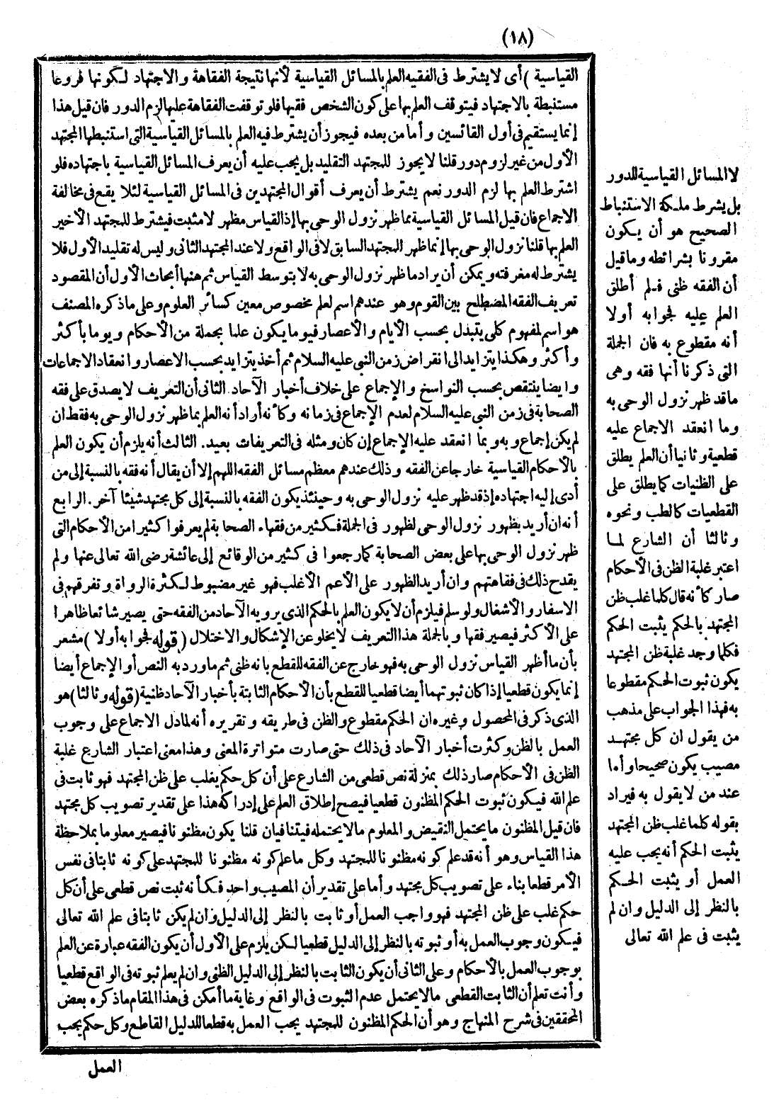 وَالْبَيْعِ وَنَحْوِهَا فَمَعْرِفَةُ مَا لَهَا وَمَا عَلَيْهَا مِنْ الِاعْتِقَادِيَّات هِيَ عِلْمُ الْكَلَامِ وَمَعْرِفَةُ مَا لَهَا وَمَا عَلَيْهَا مِنْ الْوِجْدَانِيَّاتِ هِيَ عِلْمُ الْأَخْلَاقِ وَالتَّصَوُّفُ كَالزُّهْدِ وَالصَّبْرِ وَالرِّضَا وَحُضُورِ الْقَلْبِ فِي الصَّلَاةِ وَنَحْوِ ذَلِكَ، وَمَعْرِفَةُ مَا لَهَا وَمَا عَلَيْهَا مِنْ الْعَمَلِيَّاتِ هِيَ الْفِقْهُ الْمُصْطَلَحُ، فَإِنْ أَرَدْت بِالْفِقْهِ هَذَا الْمُصْطَلَحَ زِدْت عَمَلًا عَلَى قَوْلِهِ مَا لَهَا وَمَا عَلَيْهَا وَإِنْ أَرَدْت مَا يَشْمَلُ الْأَقْسَامَ الثَّلَاثَةَ لَمْ تَزِدْ وَأَبُو حَنِيفَةَ - رَحِمَهُ اللَّهُ - إنَّمَا لَمْ يَزِدْ عَمَلًا؛ لِأَنَّهُ أَرَادَ الشُّمُولَ أَيْ أَطْلَقَ الْفِقْهَ عَلَى الْعِلْمِ بِمَا لَهَا وَعَلَيْهَا سَوَاءٌ كَانَ مِنْ الِاعْتِقَادِيَّات أَوْ الْوِجْدَانِيَّاتِ أَوْ الْعَمَلِيَّاتِ، ثُمَّ سَمَّى الْكَلَامَ فِقْهًا أَكْبَرَ