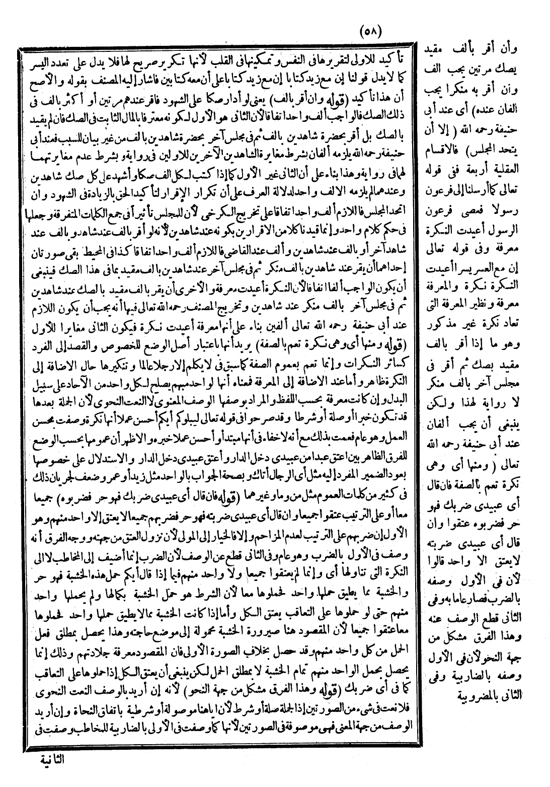 لَهُ يُخْرِجُ الْجَمْعَ الْمُنَكَّرَ نَحْوَ رَأَيْت رِجَالًا، وَهَذَا مَعْنَى قَوْلِهِ وَإِلَّا فَجَمْعٌ مُنَكَّرٌ أَيْ: وَإِنْ لَمْ يَسْتَغْرِقْ جَمِيعَ مَا يَصْلُحُ لَهُ، وَقَوْلُهُ وَنَحْوُهُ، مِثْلُ رَأَيْت جَمَاعَةً مِنْ الرِّجَالِ فَعَلَى قَوْلِ مَنْ لَا يَقُولُ بِعُمُومِ الْجَمْعِ الْمُنَكَّرِ يَكُونُ الْجَمْعُ الْمُنَكَّرُ وَاسِطَةً بَيْنَ الْخَاصِّ وَالْعَامِّ عَلَى قَوْلِ مَنْ يَقُولُ بِعُمُومِهِ يُرَادُ بِالْجَمْعِ الْمُنَكَّرِ هَاهُنَا الْجَمْعُ الْمُنَكَّرُ الَّذِي تَدُلُّ الْقَرِينَةُ عَلَى أَنَّهُ غَيْرُ عَامٍّ، فَإِنَّ هَذَا يَكُونُ