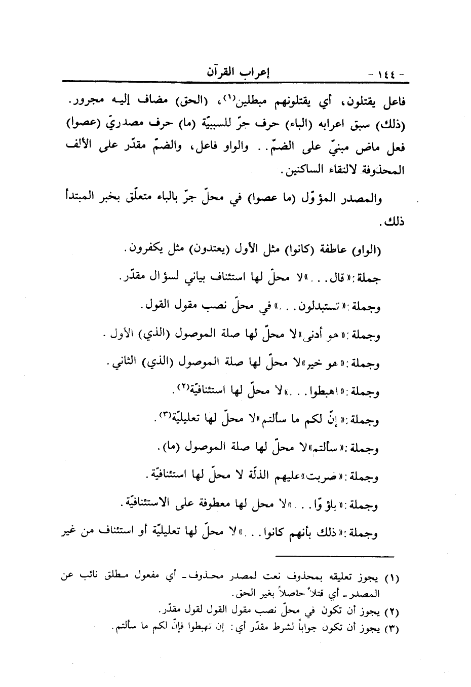 (1) يجوز تعليقه بمحذوف نعت لمصدر محذوف- أي مفعول مطلق نائب عن المصدر- أي قتلا حاصلا بغير الحق.
