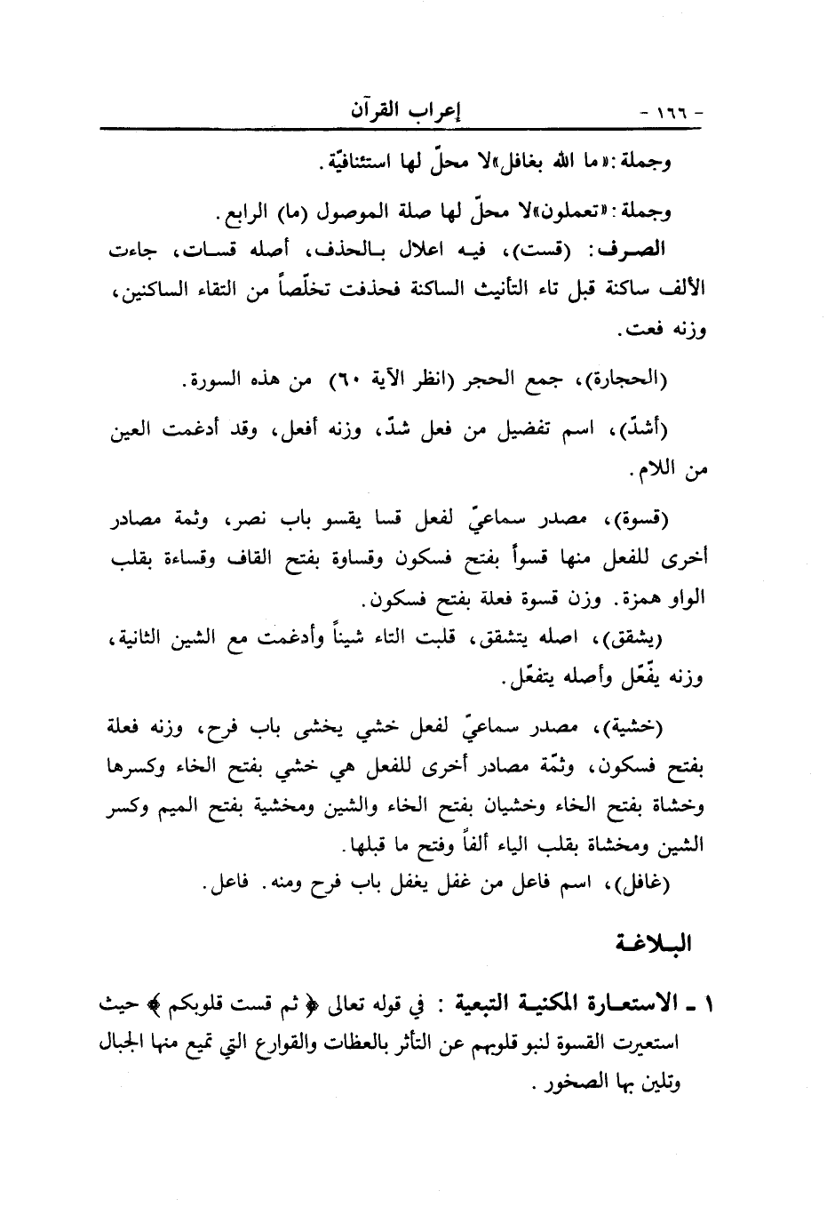 1- الاستعارة المكنية التبعية: في قوله تعالى ثُمَّ قَسَتْ قُلُوبُكُمْ حيث استعيرت القسوة لنبو قلوبهم عن التأثر بالعظات والقوارع التي تميع منها الجبال وتلين بها الصخور.