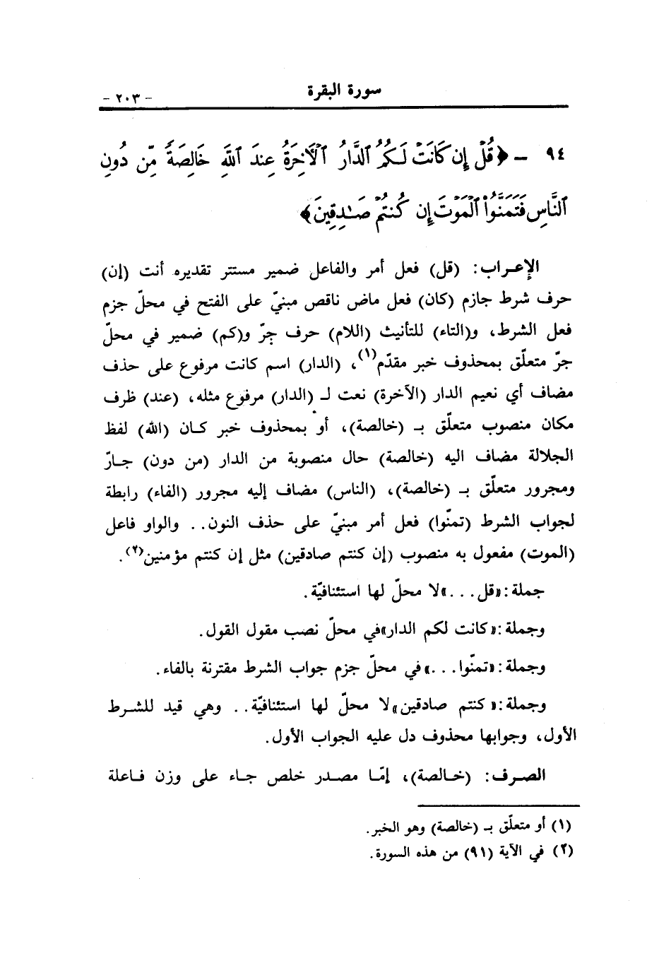 قُلْ إِنْ كانَتْ لَكُمُ الدَّارُ الْآخِرَةُ عِنْدَ اللَّهِ خالِصَةً مِنْ دُونِ النَّاسِ فَتَمَنَّوُا الْمَوْتَ إِنْ كُنْتُمْ صادِقِينَ (94)