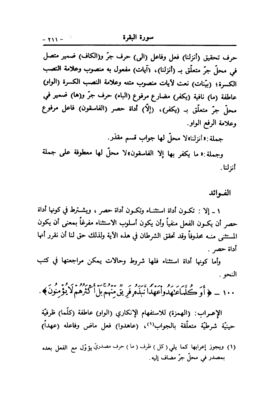 (الهمزة) للاستفهام الإنكاري (الواو) عاطفة (كلّما) ظرفيّة حينيّة شرطيّة متعلّقة بالجواب «1» ، (عاهدوا) فعل ماض وفاعله (عهدا)
