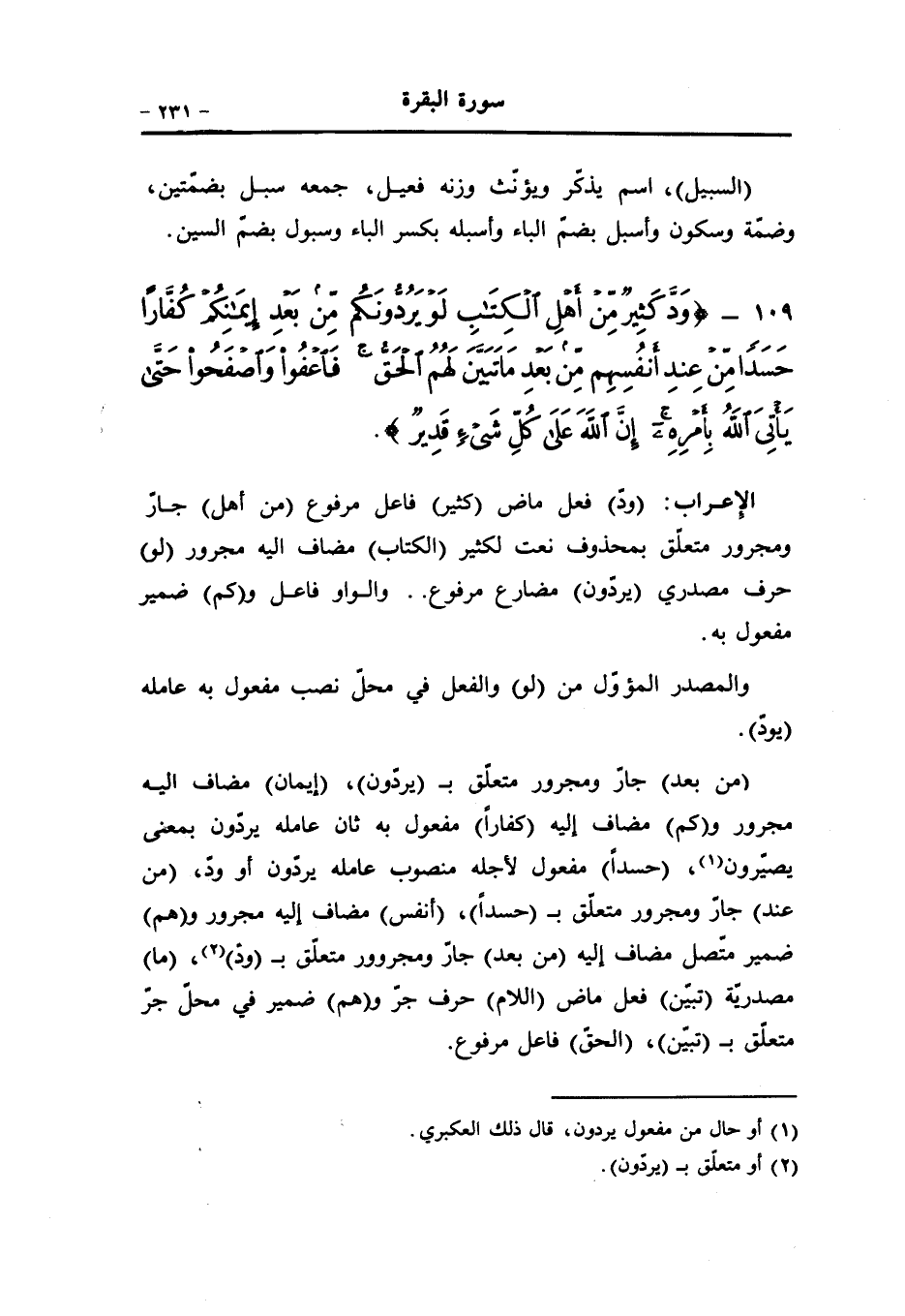 وَدَّ كَثِيرٌ مِنْ أَهْلِ الْكِتابِ لَوْ يَرُدُّونَكُمْ مِنْ بَعْدِ إِيمانِكُمْ كُفَّاراً حَسَداً مِنْ عِنْدِ أَنْفُسِهِمْ مِنْ بَعْدِ ما تَبَيَّنَ لَهُمُ الْحَقُّ فَاعْفُوا وَاصْفَحُوا حَتَّى يَأْتِيَ اللَّهُ بِأَمْرِهِ إِنَّ اللَّهَ عَلى كُلِّ شَيْءٍ قَدِيرٌ (109)