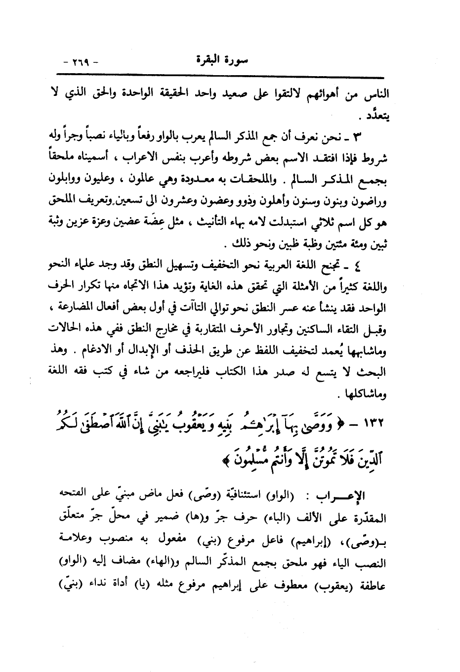 وَوَصَّى بِها إِبْراهِيمُ بَنِيهِ وَيَعْقُوبُ يا بَنِيَّ إِنَّ اللَّهَ اصْطَفى لَكُمُ الدِّينَ فَلا تَمُوتُنَّ إِلاَّ وَأَنْتُمْ مُسْلِمُونَ (132)