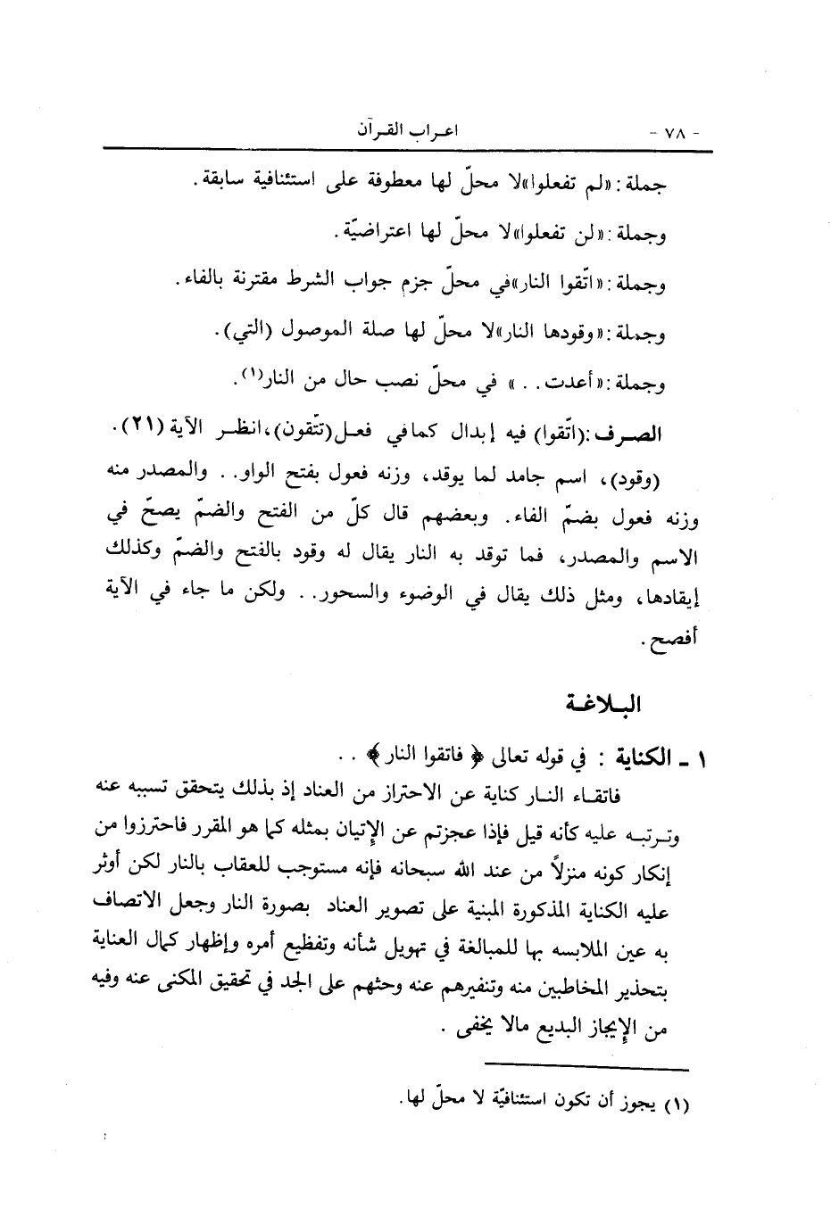 1- الكناية: في قوله تعالى فَاتَّقُوا النَّارَ..
