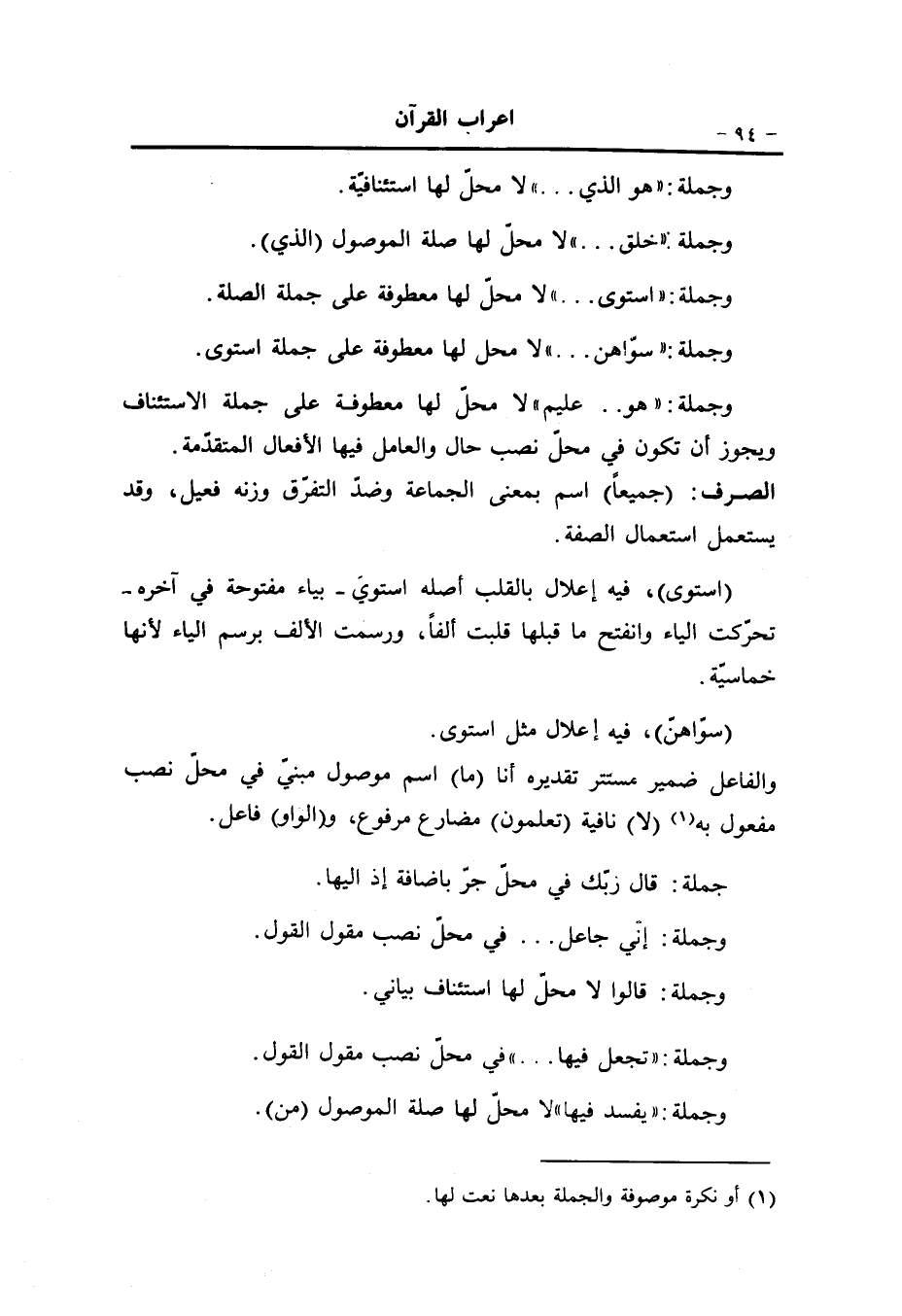 (استوى) ، فيه إعلال بالقلب أصله استوي- بياء مفتوحة في آخره- تحرّكت الياء وانفتح ما قبلها قلبت ألفا، ورسمت الألف برسم الياء لأنها خماسيّة.