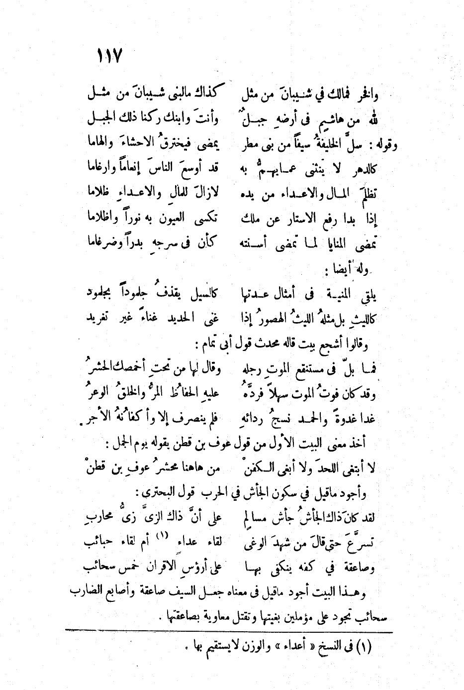 (تسرعَ حتى قالَ من شهدَ الوغى ... لقاء عداءٍ أم لقاء حبائب)