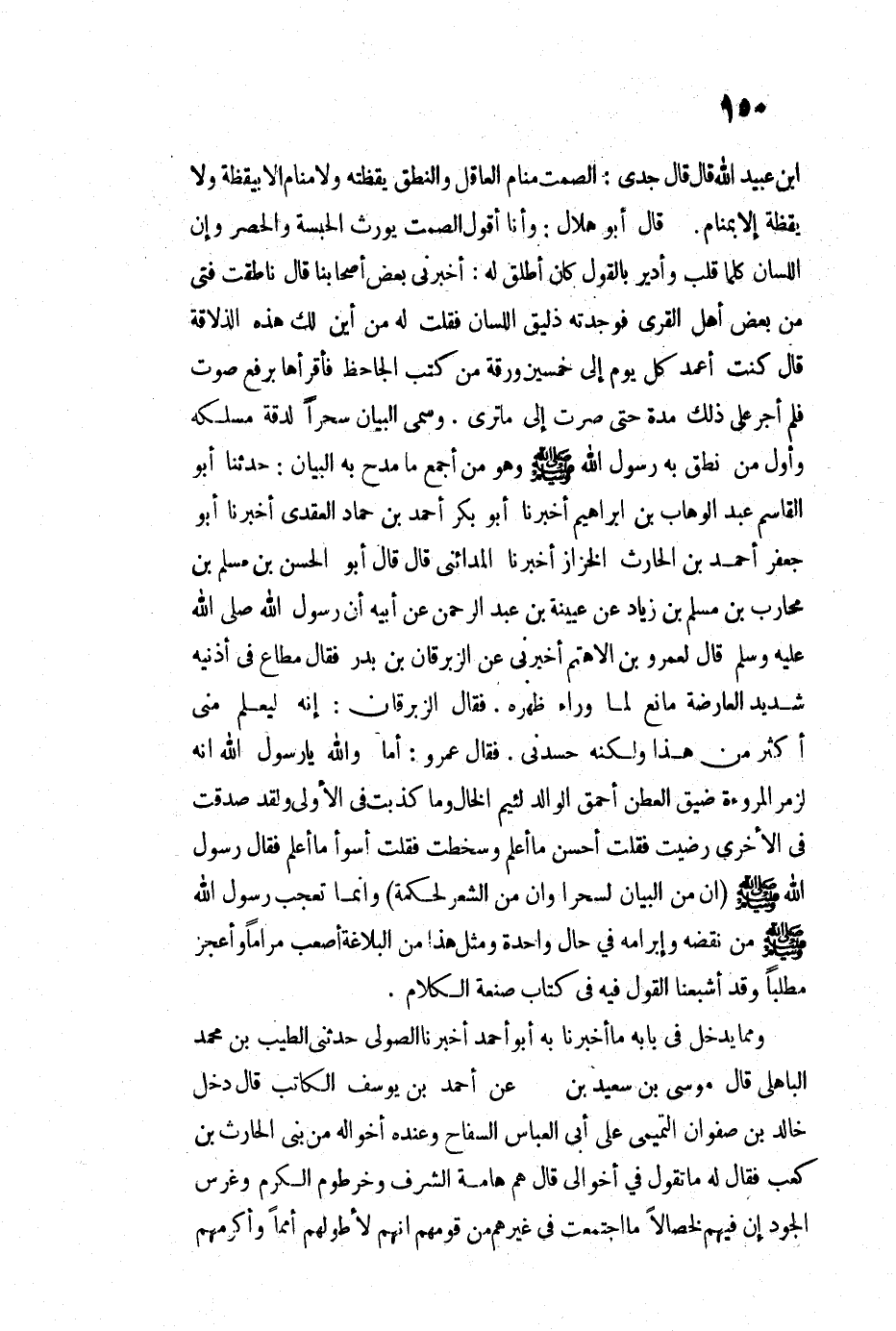 ابن عبيد الله قال قال جدي: الصمت منام العاقل والنطق يقظته ولا منام إلا بيقظة ولا يقظة إلا بمنام. قال أبو هلال: وأنا أقول الصمت يورث الحبسة والحصر وإن اللسان كلما قلب وأدير بالقول كان أطلق له: