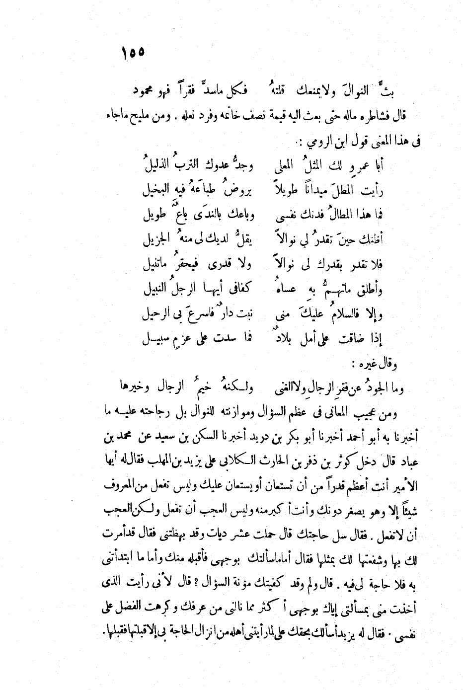 ومن عجيب المعاني في عظم السؤال وموازنته للنوال بل رجاحته عليه ما