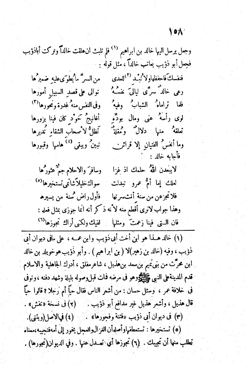 وجعل يرسل إليها خالد بن إبراهيم فلم تلبث أن علقت خالداً وتركت أبا ذؤيب فجعل أبو ذؤيب يعاتب خالداً، مثل قوله: