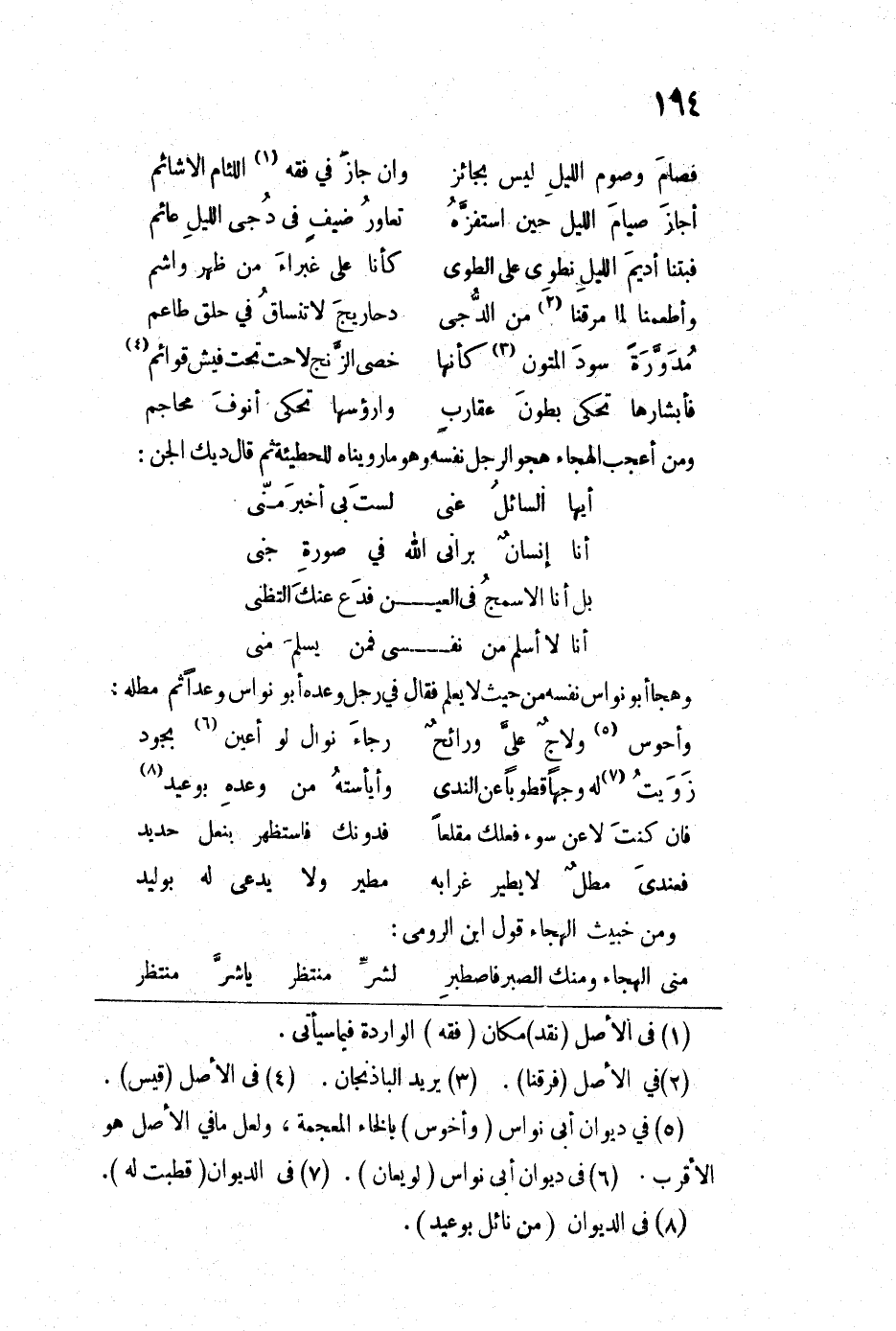 (أجازَ صيامَ الليلِ حين استفزهُ ... تعاورُ ضيفٍ في دُجى الليلِ عائمِ)