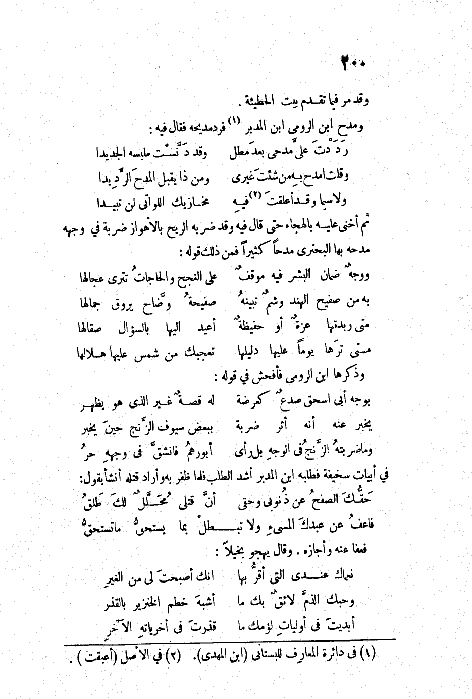 وقد مر فيما تقدم بيت الحطيئة: ومدح ابن الرومي ابن المدبر فرد مديحه فقال فيه: