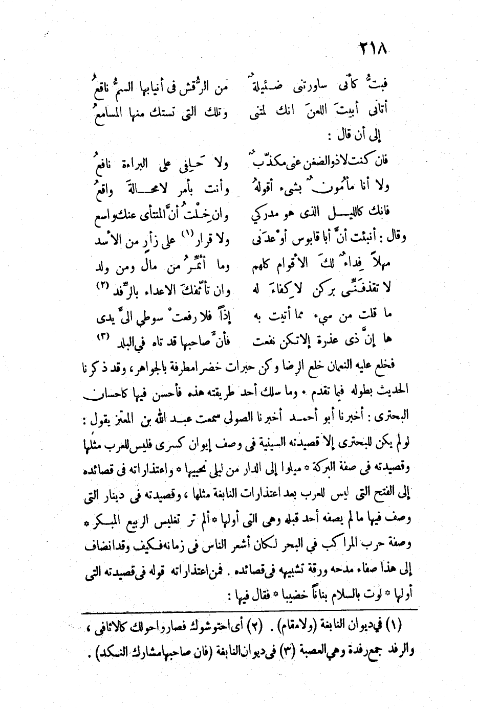 أخبرنا أبو أحمد أخبرنا الصولي سمعت عبد الله بن المعتز يقول: لو لم يكن للبحتري إلا قصيدته السينية في وصف إيوان كسرى فليس للعرب مثلها وقصيدته في صفة البركة