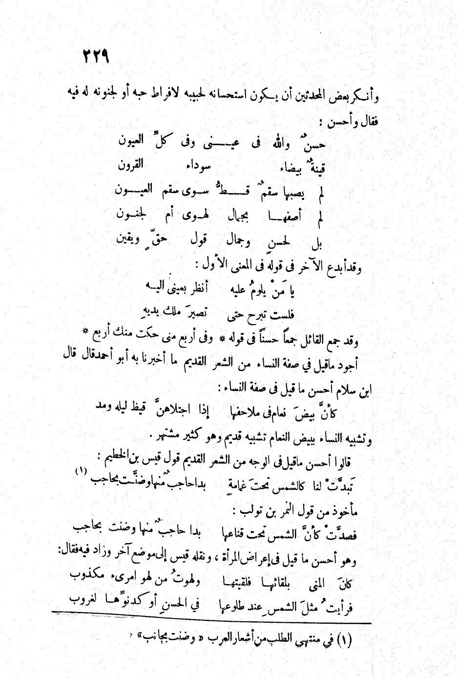 (فرأيتُ مثلَ الشمسِ عند طلوعها ... في الحسنِ أو كدنوِّها لغروبِ)