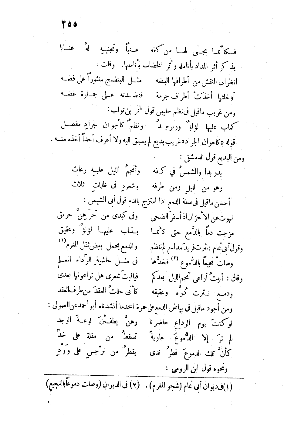 ومن أجود ما قيل في بياض الدمع على حمرة الخد ما أنشدناه أبو أحمد عن الصولي:
