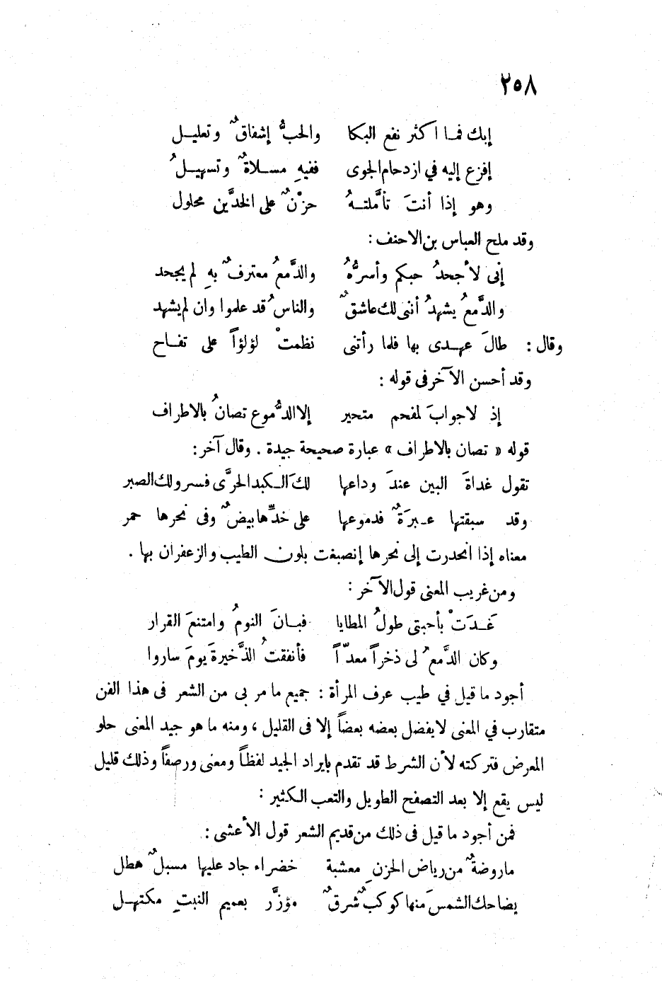 أجود ما قيل في طيب عرف المرأة: جميع ما مر بي من الشعر في هذا الفن متقارب في المعنى لا يفضل بعضه بعضاً إلا في القليل، ومنه ما هو جيد المعنى حلو المعرض فتركته لأن الشرط قد تقدم بايراد الجيد لفظاً ومعنى ورصفاً وذلك قليل ليس يقع إلا بعد التصفح الطويل والتعب الكثير:
