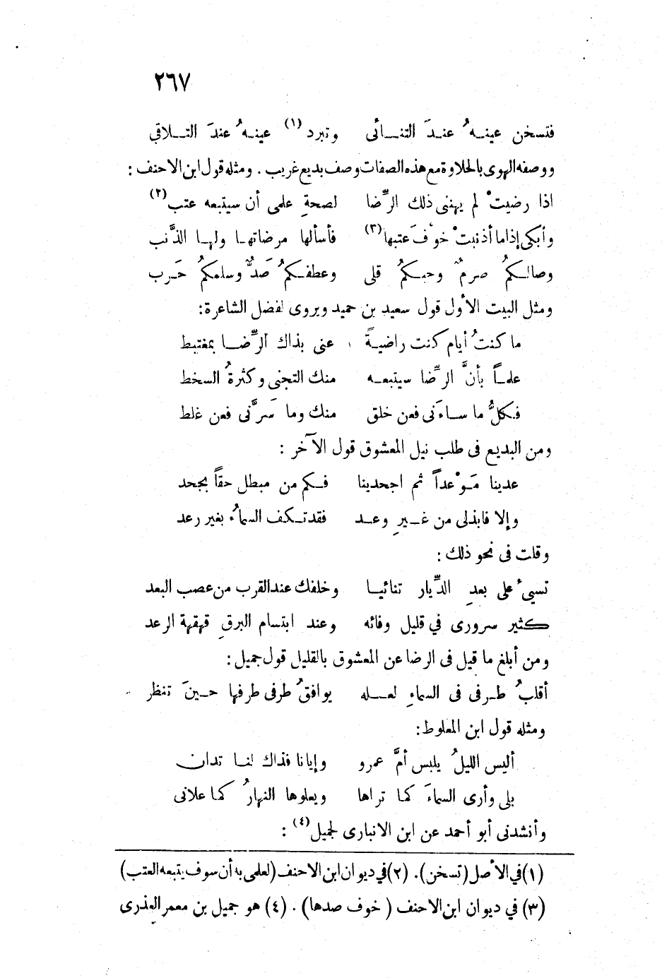 (فتسخنِ عينهُ عندَ التنائي ... وتبرد عينهُ عندَ التلاقي)