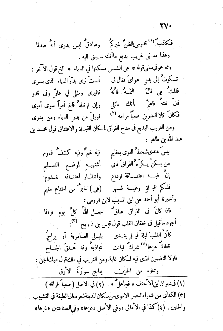 ومن الغريب البديع في مدح الفراق لمكان القبلة والاعتناق قول محمد بن عبد الله بن طاهر: