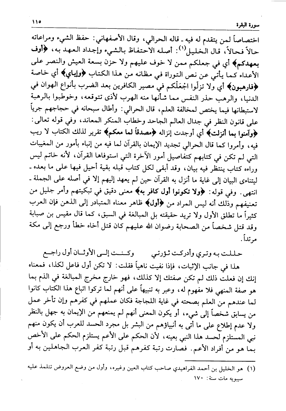 اختصاصاً لمن يتقدم له فيه - قاله الحرالي ، وقال الأصفهاني : حفظ الشيء ومراعاته حالاً فحالاً ، قال الخليل : أصله الاحتفاظ بالشيء وإجداد العهد به ، ) أوف بعهدكم ) أي في جعلكم ممن لا خوف عليهم و لا حزن بسعة العيش والنصر على الأعداء كما يأتي عن نص التوراة في مظانه من هذا الكتاب ) وإياي ) أي خاصة ) فارهبون ) أي ولا تزلّوا اجْعَلْكم في مصير الكافرين بعد الضرب بأنواع الهوان في الدنيا ، والرهب حذر النفس مما شأنها منه الهرب لأذى تتوقعه ، وخوطبوا بالرهبة لاستبطانها فيما يختص لمخالفة العلم ، قال الحرالي : وأطال سبحانه في حجاجهم جرياً على قانون النظر في جدال العالم الجاحد وخطاب المنكر المعانج ، وفي قوله تعالى : ( وآمنوا بما أنزلت ) أي أوجدت إنزاله ) مصدقاً لما معكم ( تقرير لذلك الكتاب لا ريب فيه ، وأمروا كما قال الحرالي تجديد الإيمان بالقرآن لما فيه من إنباء بأمور من المغيبات التي لم تكن في كتابهم كتفاصيل أمور الآخرة التي استوفاها القرآن ، لأنه خاتم ليس وراءه كتاب ينتظر فيه بيان ، وقد أبقى لكل كتاب قبله بقية أحيل فيها على ما بعده - ليتناءى البيان إلى غاية ما أنزل به القرآن حين لم يعهد إليهم إلا في اصله على الجملة - انتهى .