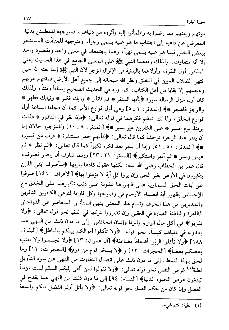 موتهم وبعثهم مما رضوا به و اطمأنوا إليه وآثروه من دنياهم ، فمتوجهه للمطمئن بدنيا المعرض عن داعيه إلى اجتناب ما هو عليه يسمى زجراً ، ومتوجهه للمتلفّت المستشعر ببعض الخلل فيما هو عليه يسمى نهياً ، وهما يجتمعان في معنى واحد ومقصود واحد إلا أنه متفاوت ، ولذلك رددهما النبي ( صلى الله عليه وسلم ) على المعنى الجامع في هذا الحديث يعني المذكور أول البقرة ، وأولاهما بالبدئية في الإنزال الزجر لأن النبي ( صلى الله عليه وسلم ) إنما بعثه اللح حين انتهى الضلال المبين في الخلق ونظر الله سبحانه إلى جميع أهل الأرض فمقتهم عربهم وعجمهم إلا بقايا من أهل الكتاب ، كما ورد في الحديث الصحيح إسناداً ومتناً ، ولذلك كان أول منزل الرسالة سورة