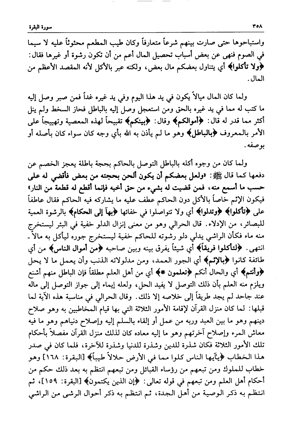 واستباحوها حتى صارت بينهم شرعاً متعارفاً وكان طيب المطعم محثوثاً عليه لا سيما في الصوم فنهى عن بعض أسباب تحصيل المال أعم من أن تكون رشوة أو غيرها فقال : ( ولا تأكلوا ) أي يتناول بعضكم مال بعض ، ولكنه عبر بالأكل لأنه المقصد الأعظم من المال .