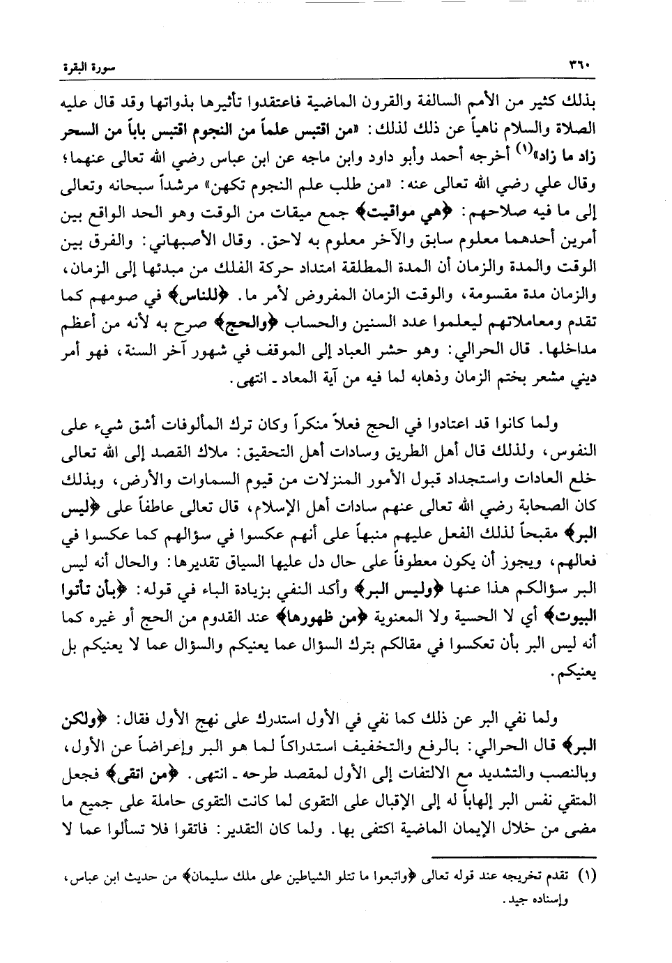 بذلك كثير من الأمم السالفة والقرون الماضية فاعتقدوا تأثيرها بذواتها وقد قال عليه الصلاة والسلام ناهياً عن ذلك لذلك : ( من اقتبس علماً من النجوم اقتبس باباً من السحر زاد ما زاد ) أخرجه أحمد وأبو داود وابن ماجه عن ابن عباس رضي الله تعالى عنهما ؛ وقال علي رضي الله تعالى عنه : ( من طلب علم النجوم تكهن ) مرشداً سبحانه وتعالى إلى ما فيه صلاحهم : ( هي مواقيت ( جمع ميقات من الوقت وهو الحد الواقع بين أمرين أحدهما معلوم سابق والآخر معلوم به لاحق .