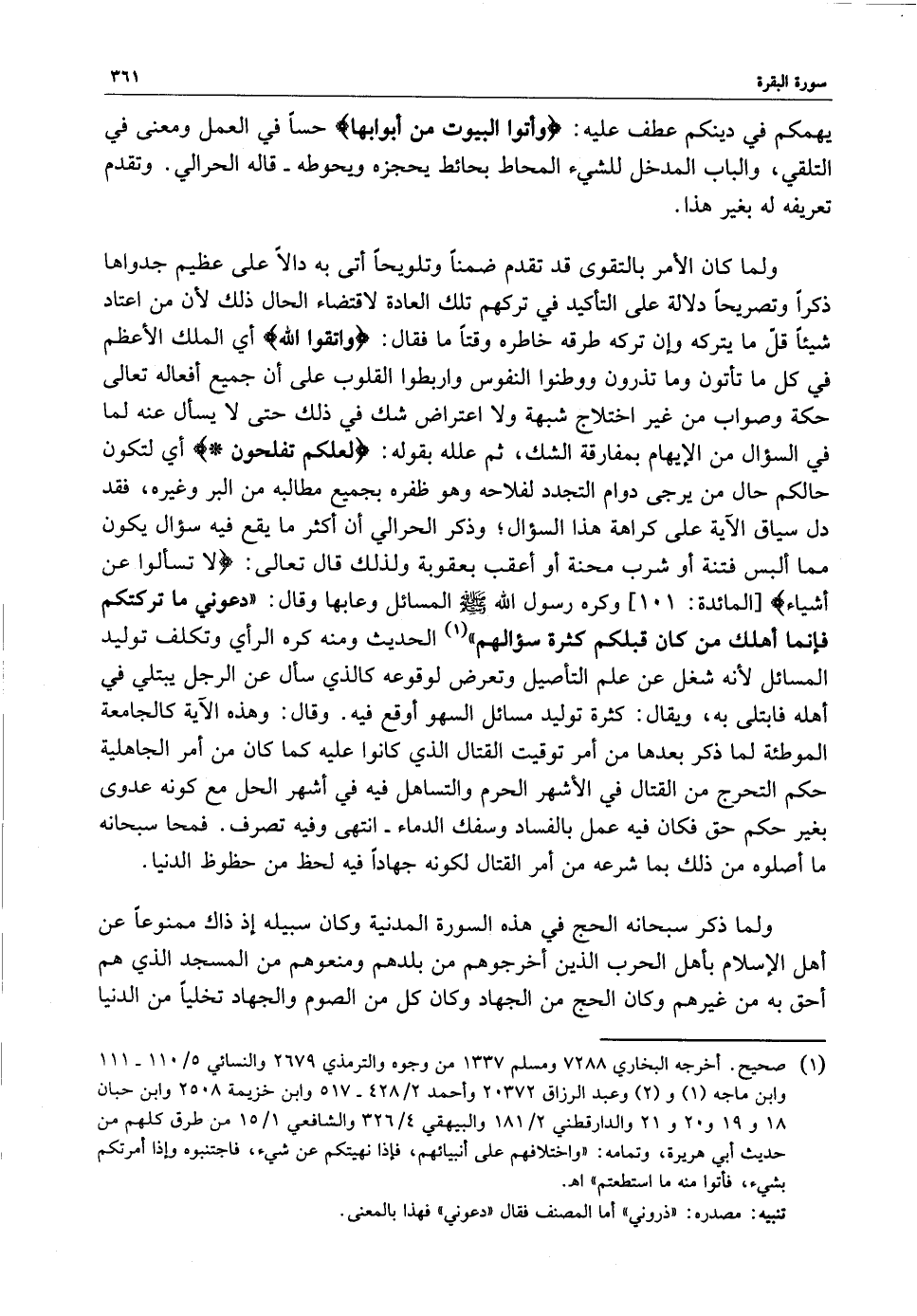 يهمكم في دينكم عطف عليه : ( وأتوا البيوت من أبوابها ( حساً في العمل ومعنى في التلقي ، والباب المدخل للشيء المحاط بحائط يحجزه ويحوطه - قاله الحرالي .