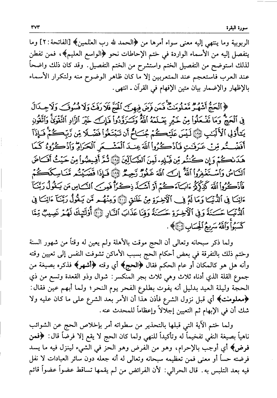 ) الْحَجُّ أَشْهُرٌ مَّعْلُومَاتٌ فَمَن فَرَضَ فِيهِنَّ الْحَجَّ فَلاَ رَفَثَ وَلاَ فُسُوقَ وَلاَ جِدَالَ فِي الْحَجِّ وَمَا تَفْعَلُواْ مِنْ خَيْرٍ يَعْلَمْهُ اللَّهُ وَتَزَوَّدُواْ فَإِنَّ خَيْرَ الزَّادِ التَّقْوَى وَاتَّقُونِ يأُوْلِي الأَلْبَابِ لَيْسَ عَلَيْكُمْ جُنَاحٌ أَن تَبْتَغُواْ فَضْلاً مِّن رَّبِّكُمْ فَإِذَآ أَفَضْتُم مِّنْ عَرَفَاتٍ فَاذْكُرُواْ اللَّهَ عِندَ الْمَشْعَرِ الْحَرَامِ وَاذْكُرُوهُ كَمَا هَدَاكُمْ وَإِن كُنْتُمْ مِّن قَبْلِهِ لَمِنَ الضَّآلِّينَ ثُمَّ أَفِيضُواْ مِنْ حَيْثُ أَفَاضَ النَّاسُ وَاسْتَغْفِرُواْ اللَّهَ إِنَّ اللَّهَ غَفُورٌ رَّحِيمٌ فَإِذَا قَضَيْتُمْ مَّنَاسِكَكُمْ فَاذْكُرُواْ اللَّهَ كَذِكْرِكُمْ آبَآءَكُمْ أَوْ أَشَدَّ ذِكْراً فَمِنَ النَّاسِ مَن يَقُولُ رَبَّنَآ آتِنَا فِي الدُّنْيَا وَمَا لَهُ فِي الآخِرَةِ مِنْ خَلاَقٍ وِمِنْهُمْ مَّن يَقُولُ رَبَّنَآ آتِنَا فِي الدُّنْيَا حَسَنَةً وَفِي الآخِرَةِ حَسَنَةً وَقِنَا عَذَابَ النَّارِ أُولَئِكَ لَهُمْ نَصِيبٌ مِّمَّا كَسَبُواْ وَاللَّهُ سَرِيعُ الْحِسَابِ ( ( )