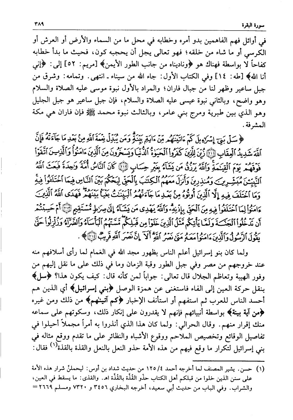 ) سَلْ بَنِي إِسْرَائِيلَ كَمْ آتَيْنَاهُم مِّنْ آيَةٍ بَيِّنَةٍ وَمَن يُبَدِّلْ نِعْمَةَ اللَّهِ مِن بَعْدِ مَا جَآءَتْهُ فَإِنَّ اللَّهَ شَدِيدُ الْعِقَابِ زُيِّنَ لِلَّذِينَ كَفَرُواْ الْحَيَاةُ الدُّنْيَا وَيَسْخَرُونَ مِنَ الَّذِينَ آمَنُواْ وَالَّذِينَ اتَّقَواْ فَوْقَهُمْ يَوْمَ الْقِيَامَةِ وَاللَّهُ يَرْزُقُ مَن يَشَآءُ بِغَيْرِ حِسَابٍ كَانَ النَّاسُ أُمَّةً وَاحِدَةً فَبَعَثَ اللَّهُ النَّبِيِّينَ مُبَشِّرِينَ وَمُنذِرِينَ وَأَنزَلَ مَعَهُمُ الْكِتَابَ بِالْحَقِّ لِيَحْكُمَ بَيْنَ النَّاسِ فِيمَا اخْتَلَفُواْ فِيهِ وَمَا اخْتَلَفَ فِيهِ إِلاَّ الَّذِينَ أُوتُوهُ مِن بَعْدِ مَا جَآءَتْهُمُ الْبَيِّنَاتُ بَغْياً بَيْنَهُمْ فَهَدَى اللَّهُ الَّذِينَ آمَنُواْ لِمَا اخْتَلَفُواْ فِيهِ مِنَ الْحَقِّ بِإِذْنِهِ وَاللَّهُ يَهْدِي مَن يَشَآءُ إِلَى صِرَاطٍ مُّسْتَقِيمٍ أَمْ حَسِبْتُمْ أَن تَدْخُلُواْ الْجَنَّةَ وَلَمَّا يَأْتِكُم مَّثَلُ الَّذِينَ خَلَوْاْ مِن قَبْلِكُم مَّسَّتْهُمُ الْبَأْسَآءُ وَالضَّرَّآءُ وَزُلْزِلُواْ حَتَّى يَقُولَ الرَّسُولُ وَالَّذِينَ آمَنُواْ مَعَهُ مَتَى نَصْرُ اللَّهِ أَلا إِنَّ نَصْرَ اللَّهِ قَرِيبٌ ( ( )